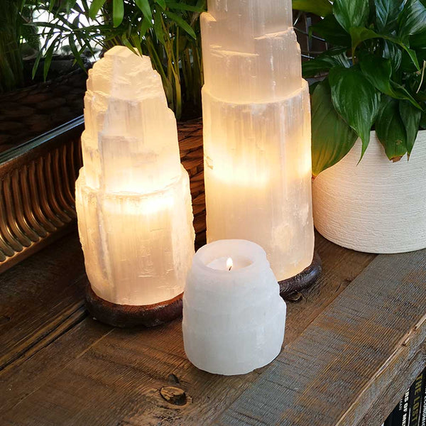 Selenite is a crystallized form of Gypsum, which is used for good luck and protection. The powerful vibration of Selenite can clear, open, and activate the Crown and Higher Chakras and is excellent for all types of spiritual work. Selenite can also be used to strengthen the memory. The Selenite Tealight Candle Holder – a mesmerizing crystal creation that bathes any room in a gentle, warm ambiance when illuminated. The ethereal glow emanating from the Selenite crystal mirrors the serene light of the moon, fostering a tranquil and relaxing environment.